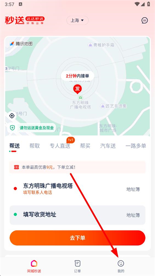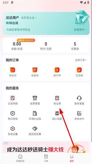 1、打开达达秒送app,点击右下角我的选项,进入个人页面。