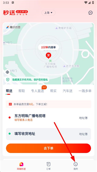 1、打开达达秒送app,点击右下角我的选项,进入个人页面。