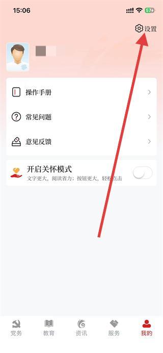 2、在我的页面,找到并点击右上角的设置图标。