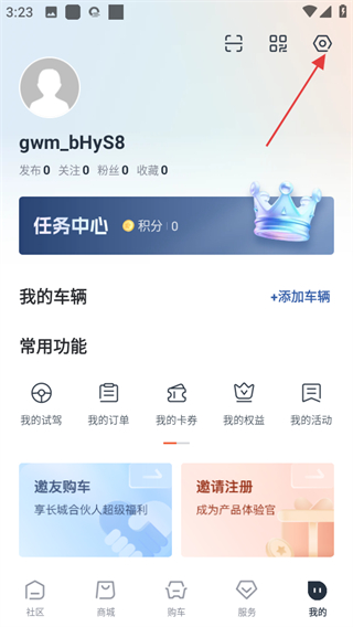 1、打开长城汽车,点击页面右下角我的,可进入个人中心页面。