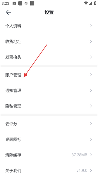 3、在设置页面,点击账户管理可进入账户管理页面。