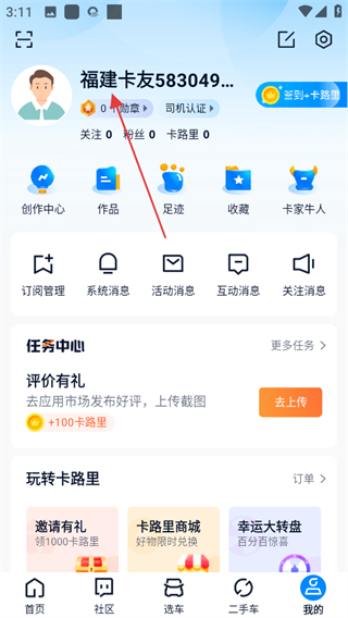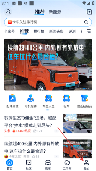1、打开卡车之家,点击页面右下角我的,可进入个人中心页面。