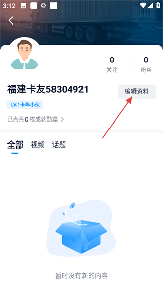 2、在个人主页,点击编辑资料可进入资料编辑页面。