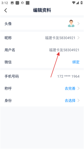 4、在信息修改页面,点击用户名可修改自己喜欢的用户名。