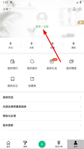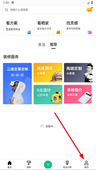 1、在最美装修app界面点击我的选项,进入个人页面。