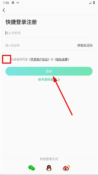 4、勾选同意相关协议后点击登录按钮,即可完成注册流程。