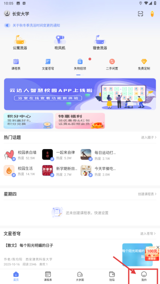 1、打开校园类应用,点击底部我的选项,进入个人中心页面。