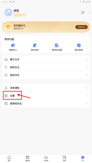 2、在个人中心页面,点击设置选项,进入设置功能列表。
