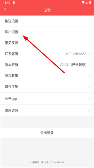 2、在设置页面点击账户设置选项,进入账号管理页面。