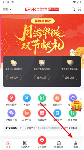 提供设计、开发、文案、装修、营销等多种分类任务,赚外快、做兼职之首选。