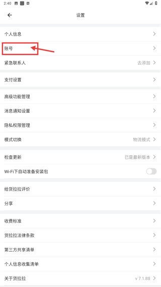 3、在设置页面,点击账号选项,进入账号管理页面。