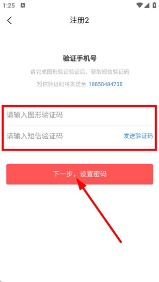 3、输入图形验证码、短信验证码后,点击下一步,设置密码,进入设置新密码页面。