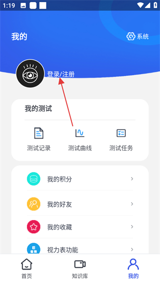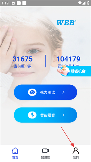 1、打开视力测试表,点击页面右下角我的,可进入个人中心页面。