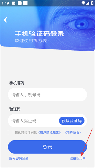 3、在登录选择页面,点击注册新用户可进入注册新用户页面。