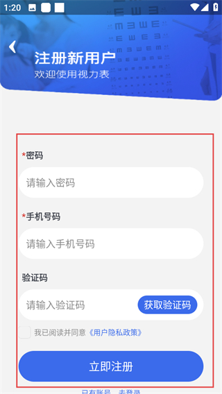 提供直观易用的视力测试工具,用户可通过手机完成基础视力检测,操作简单无需专业设备,快速了解自身视力状况,为护眼提供初步依据。