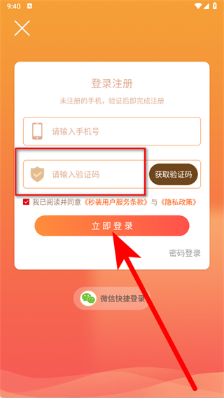 4、输入收到的验证码,点击立即登录,完成账号登录。