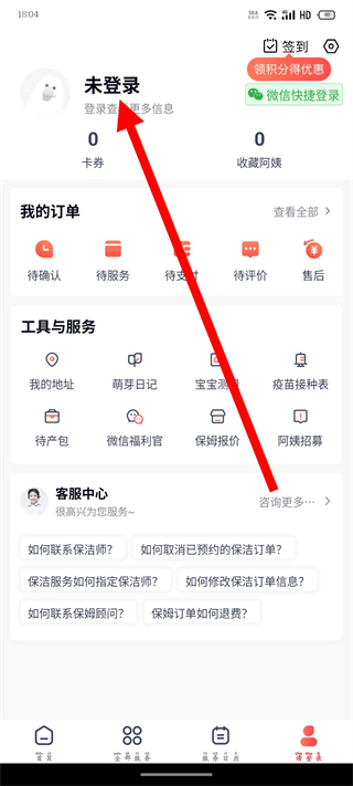 1、打开天鹅到家,点击底部导航栏的我的,进入个人中心页面。