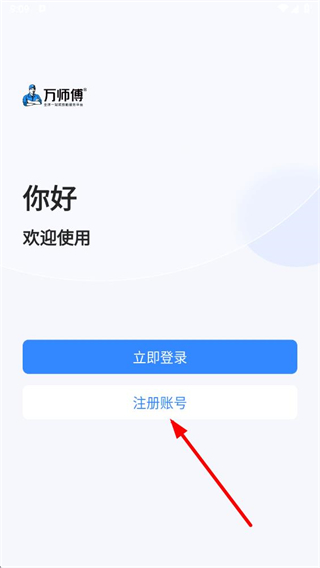 1、在万师傅app页面点击注册账号选项,进入商家注册页面。