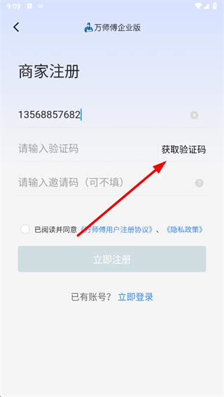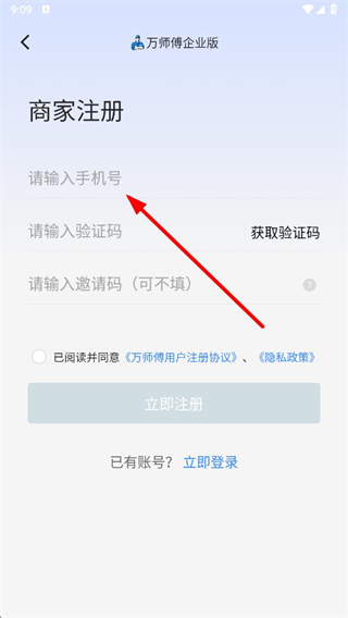 2、在商家注册页面手机号输入框内,输入手机号。