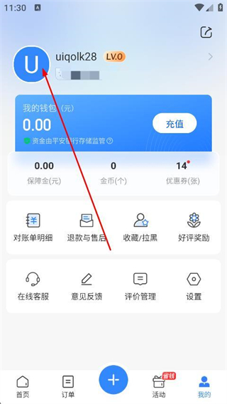 2、在我的页面中,点击头像区域,进入基本资料页面。