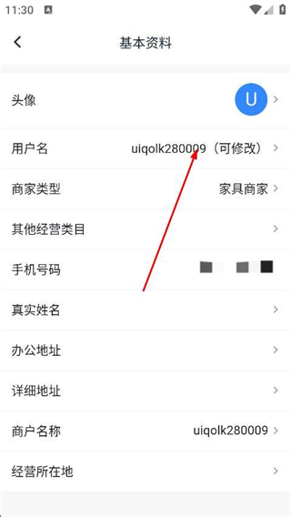 3、在基本资料页面,找到用户名选项并点击。