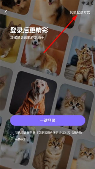 3、在登录选择页面,点击右上角其他登录方式,进入账号登录页面。
