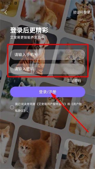 4、在账号登录页面,输入手机号和密码,点击登录/注册,完成账号登录或注册。