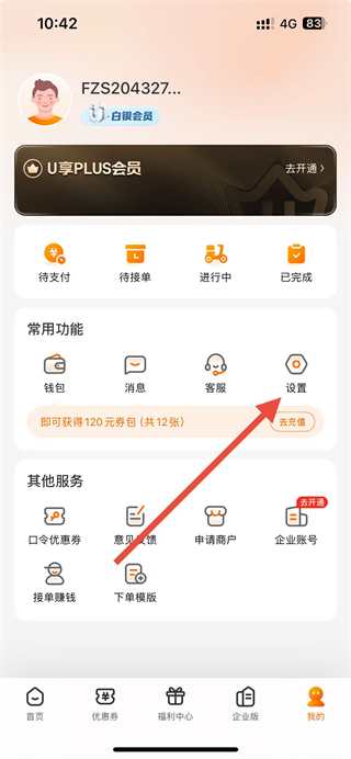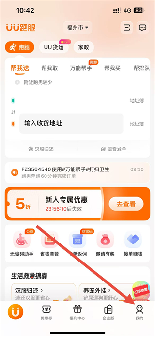 1、在UU跑腿app首页点击我的选项,进入个人页面。