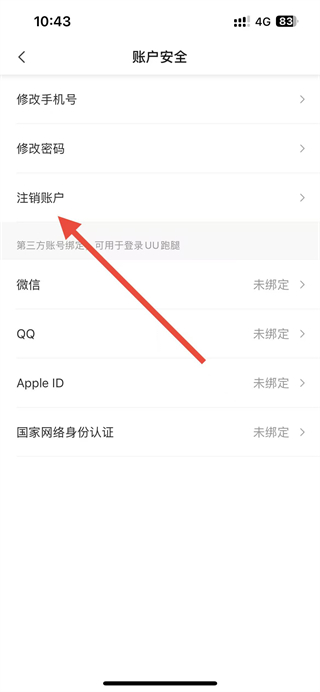 4、在账户安全页面点击注销账户选项,按提示完成账号注销操作。