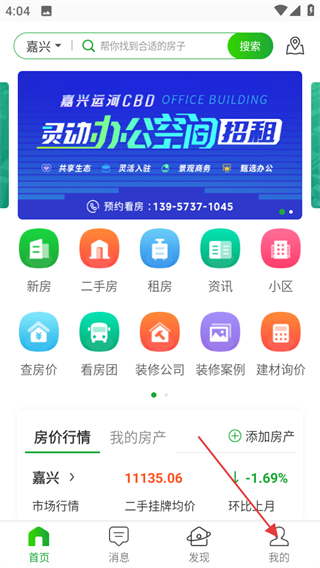 1、打开房产超市,点击页面右下角我的,可进入个人中心页面。