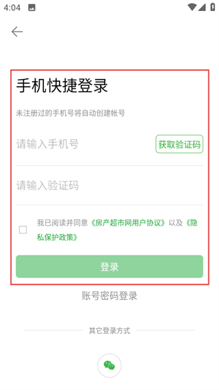 3、在登录选择页面,输入信息,同意协议后点击登录可完成账号登录。