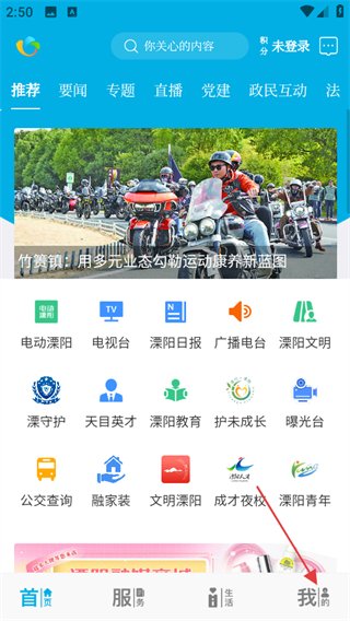 1、打开我的溧阳,点击页面右下角我的,可进入个人中心页面。