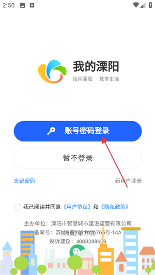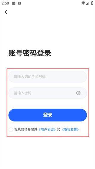 3、在账号密码登录页面,输入信息,同意协议后点击登录可完成账号登录。