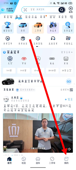 1、打开汽车之家,点击底部导航栏我的,进入个人中心页面。