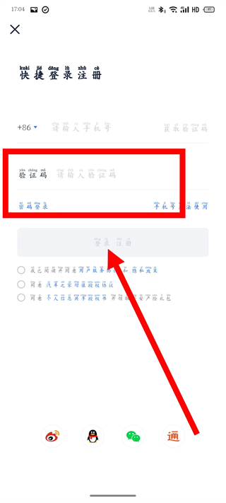 4、输入收到的短信验证码,勾选后,点击登录,完成账号登录。