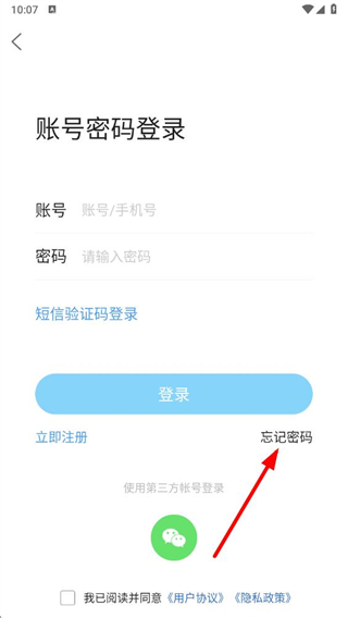 1、在云阳人家app账号密码登录页面点击忘记密码选项,进入手机号找回密码页面。