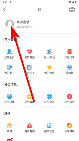 2、在我的页面,点击点击登录区域,进入账号密码登录界面。
