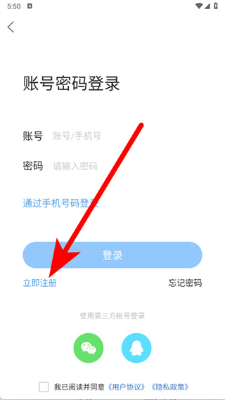 3、在登录界面,点击立即注册,进入输入手机号页面。