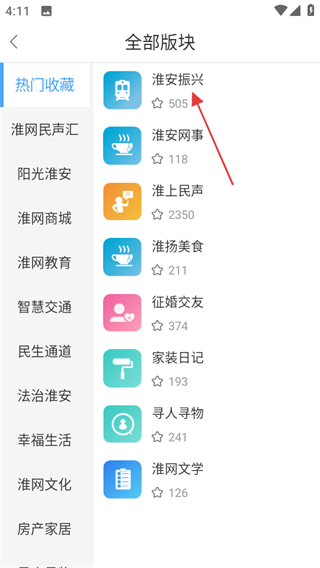 2、在帖子版块选择页面,点击淮安振兴可进入该版块的发帖页面。