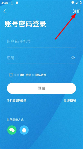3、在登录选择页面,点击注册,进入注册新账号页面。