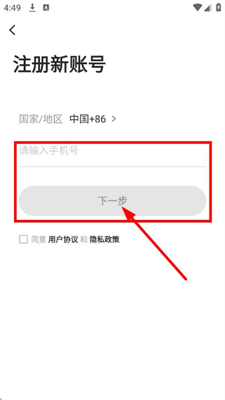 4、在注册新账号页面,输入手机号后点击下一步,完成账号注册流程。