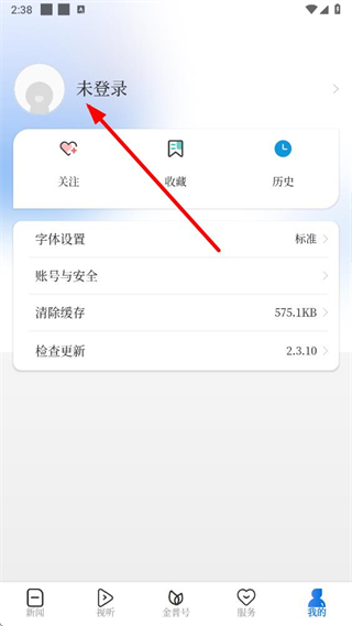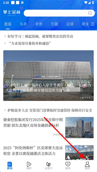 1、在掌上金普app新闻页面点击我的选项,进入个人页面。