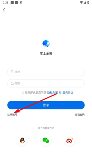 3、在登录页面点击注册账号选项,进入注册页面。