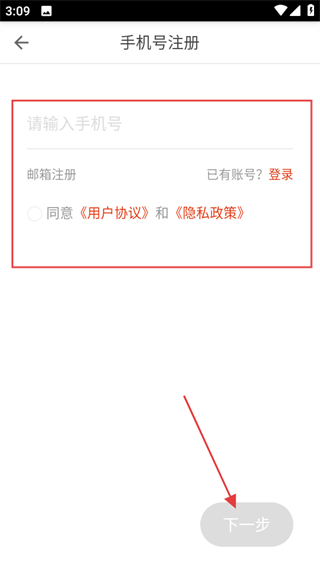 3、在手机号注册页面,输入信息点击下一步可进入填写验证码页面。