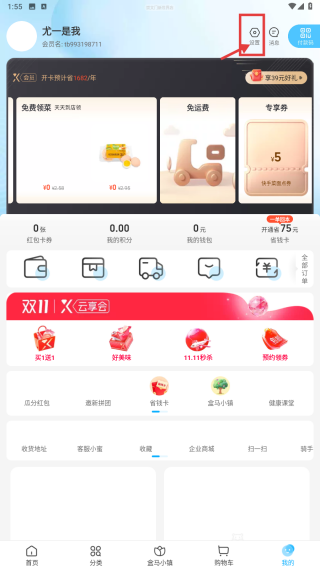 1、打开生鲜电商类应用,点击底部我的选项,进入个人中心页面。