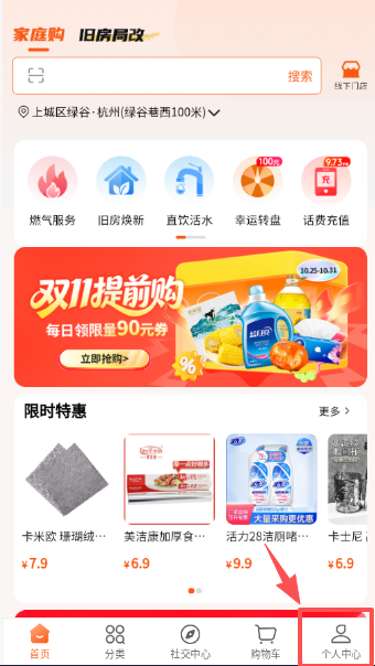 1、打开生活服务类应用,点击底部个人中心选项,进入个人中心页面。