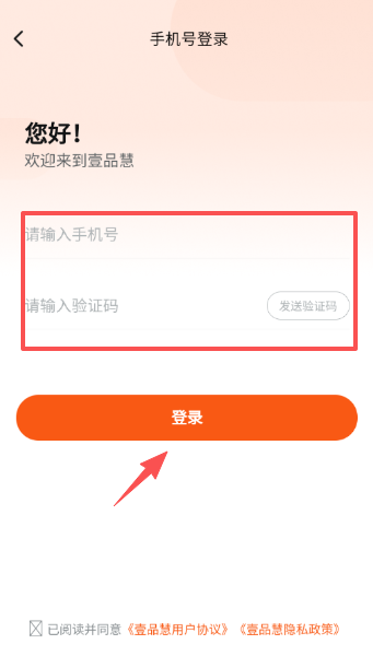 4、在手机号登录页面,输入手机号和验证码,点击登录按钮,完成账号登录操作。