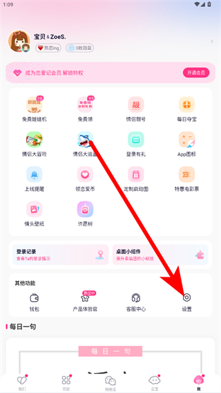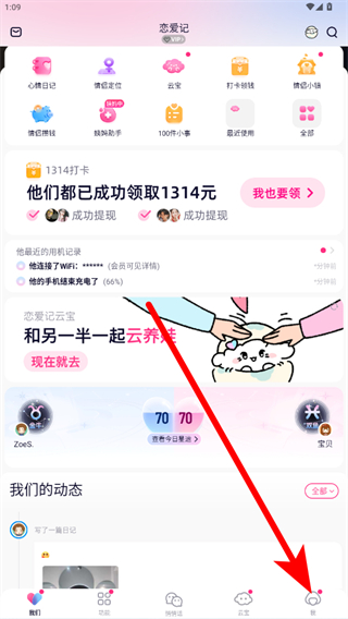 1、打开恋爱记应用,点击底部导航栏的我进入个人页面。