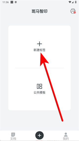 1、打开斑马智印,点击底部中间的+号,进入功能选择页面。
