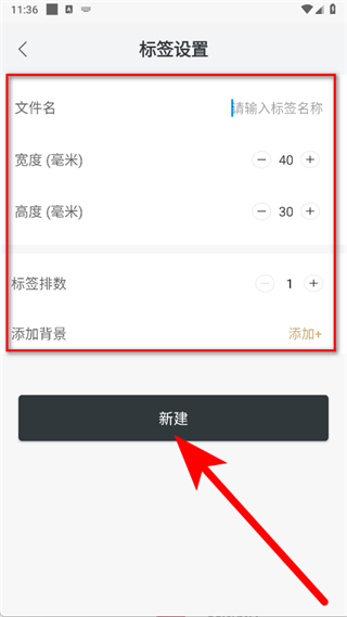 3、在标签设置页面,输入标签名称,调整宽度、高度、标签排数等,完成后点击新建按钮。